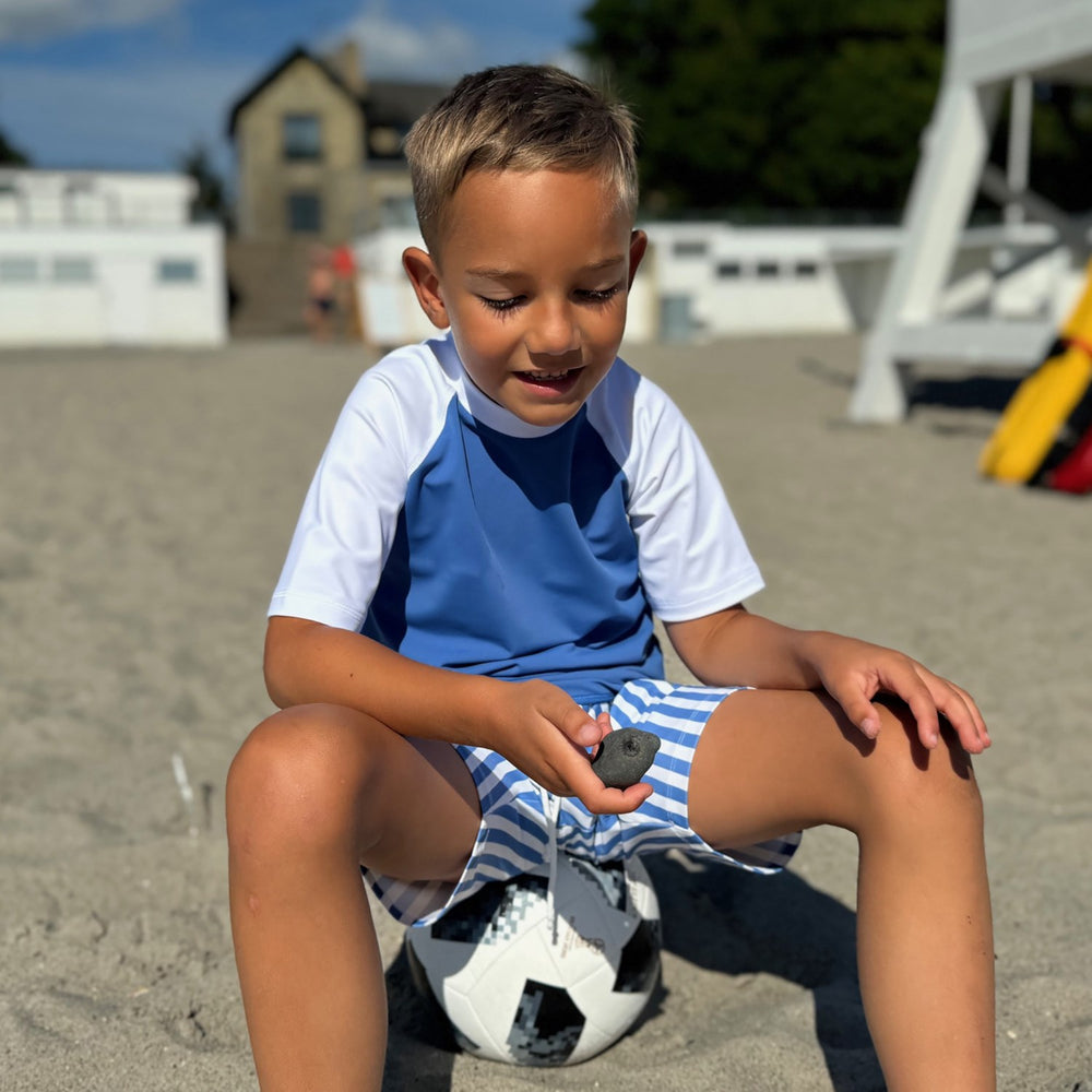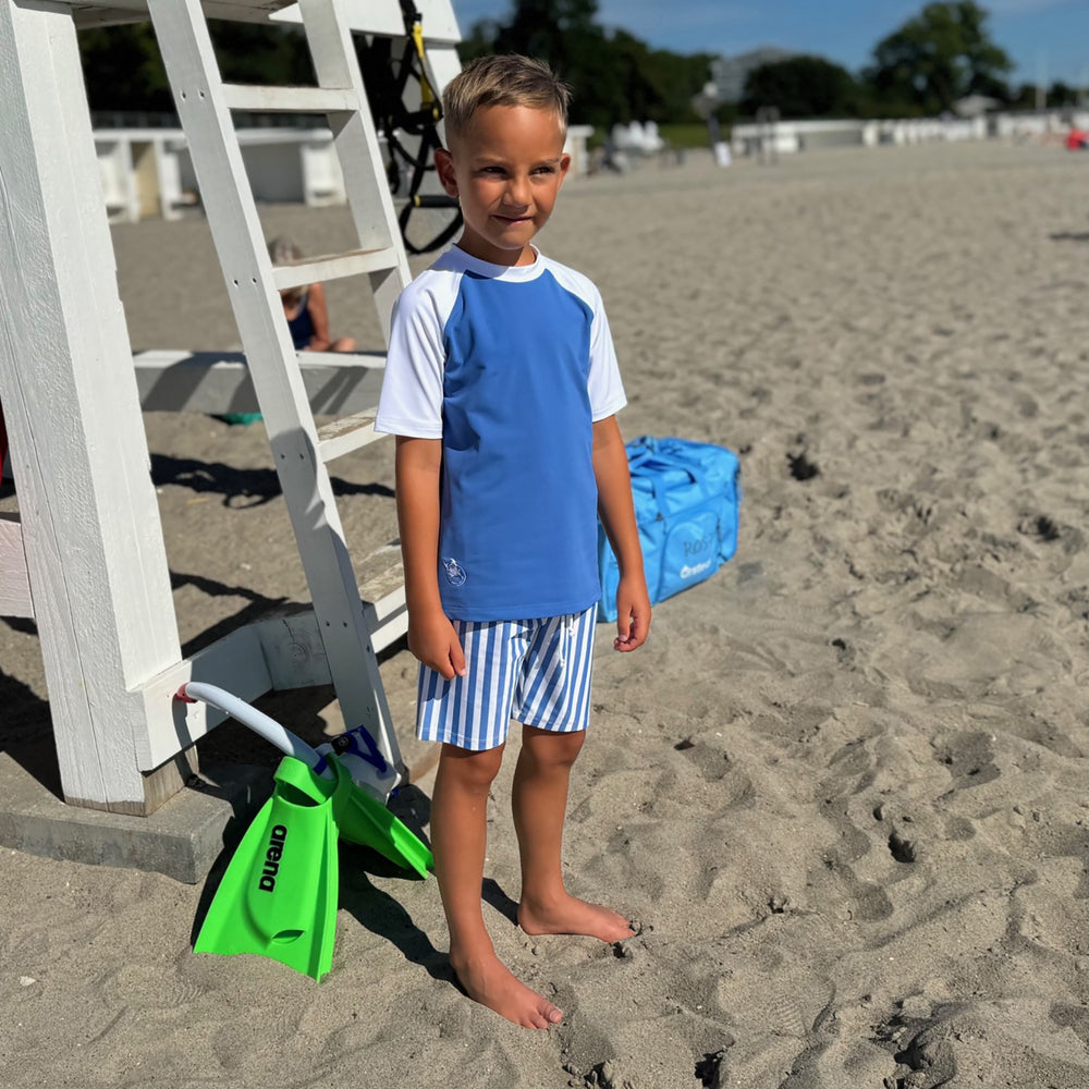 Giv dit barn den bedste beskyttelse og komfort med Petit Crabe Sapphire/White Raglan UV-Swim Bluse. Denne tofarvede UV-swim skjorte har korte raglanærmer og rund hals, sikrer fuld bevægelsesfrihed og komfort. Fremstillet af Oeko-Tex certificeret stof, tilbyder den fremragende UV-beskyttelse UPF 50+, er åndbar og hurtigtørrende. Perfekt til alle sommerens vandaktiviteter.