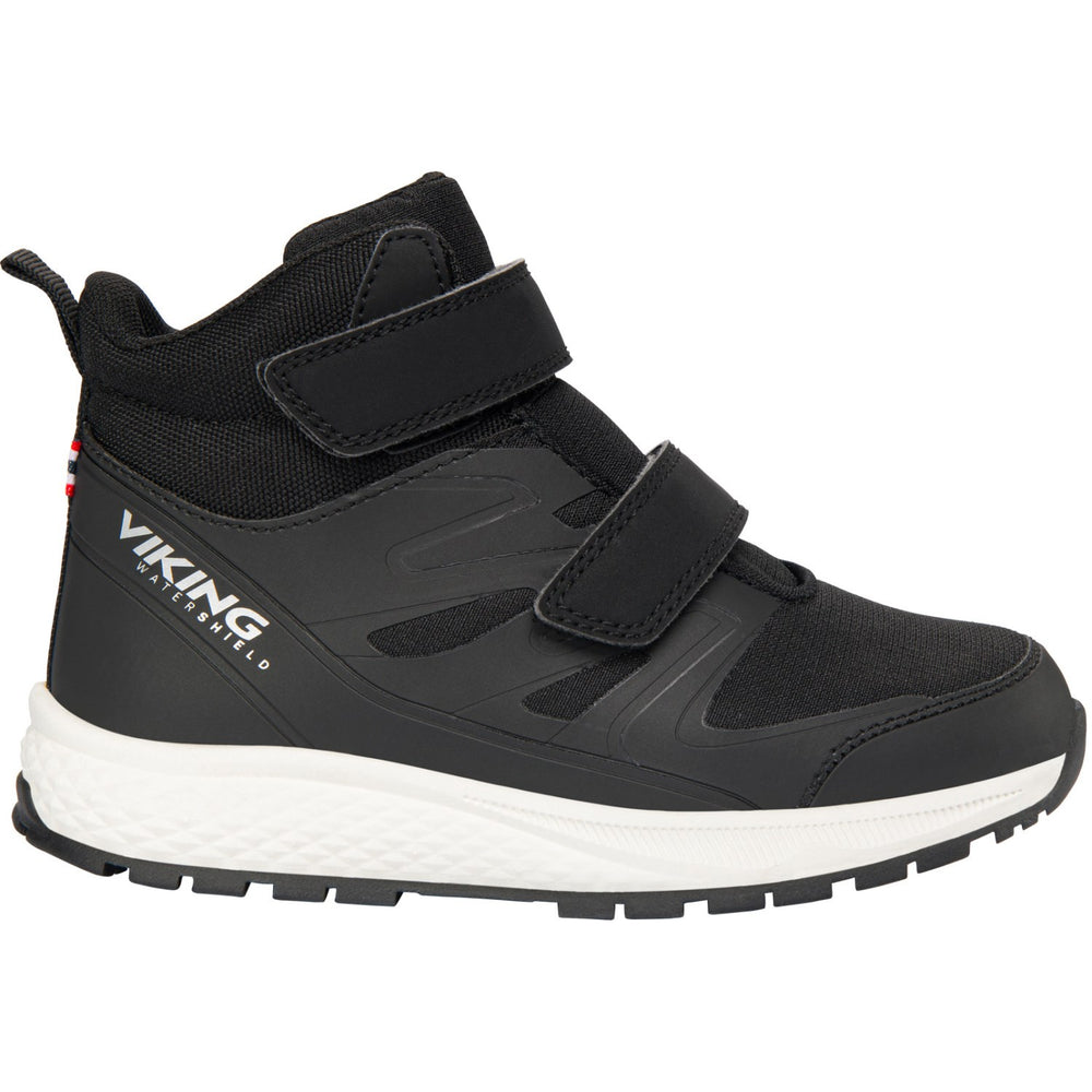 Giv dit barns fods komfort og sikkerhed med Equip Mid WP 2V fra VIKING. Disse støvler er perfekt designet til børn, med en forstærket overdel og en robust støtteramme, der sikrer både støtte og stabilitet takket være det ekstra høje skaft. Den dobbelte velcrolukning tillader en tilpasningsdygtig og behagelig pasform. Komfort er sikret med en letvægts EVA-mellemsål, der effektivt absorberer stød, mens den fuldgummi ydersål leverer fremragende greb på diverse underlag. Uanset vejrforholdene holder Vikings Watershield-membran fødderne tørre og beskytter mod vand.