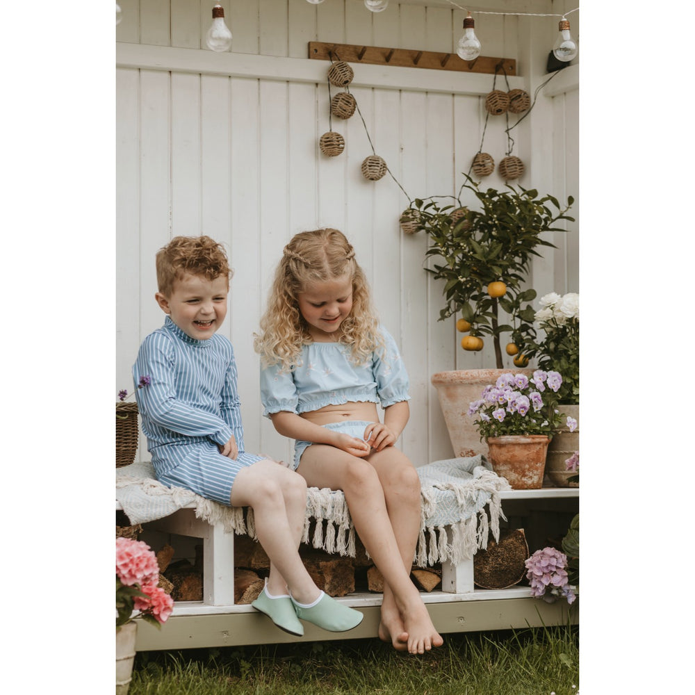 Gør sommerdagen sjovere og mere farverig for din lille med Vanilla COPENHAGEN badesko i farven Fern Green. Disse sko er designet til at tilbyde maksimal komfort og sikkerhed med deres skridsikre såler og hurtigtørrende materiale. Perfekte til strandture eller en dag ved poolen, hvor barnets fødder beskyttes stilfuldt. Let at tage på og behagelige at have på hele dagen. Bevar deres nye yndlingssko i topform ved enkel vask og hurtig tørring.