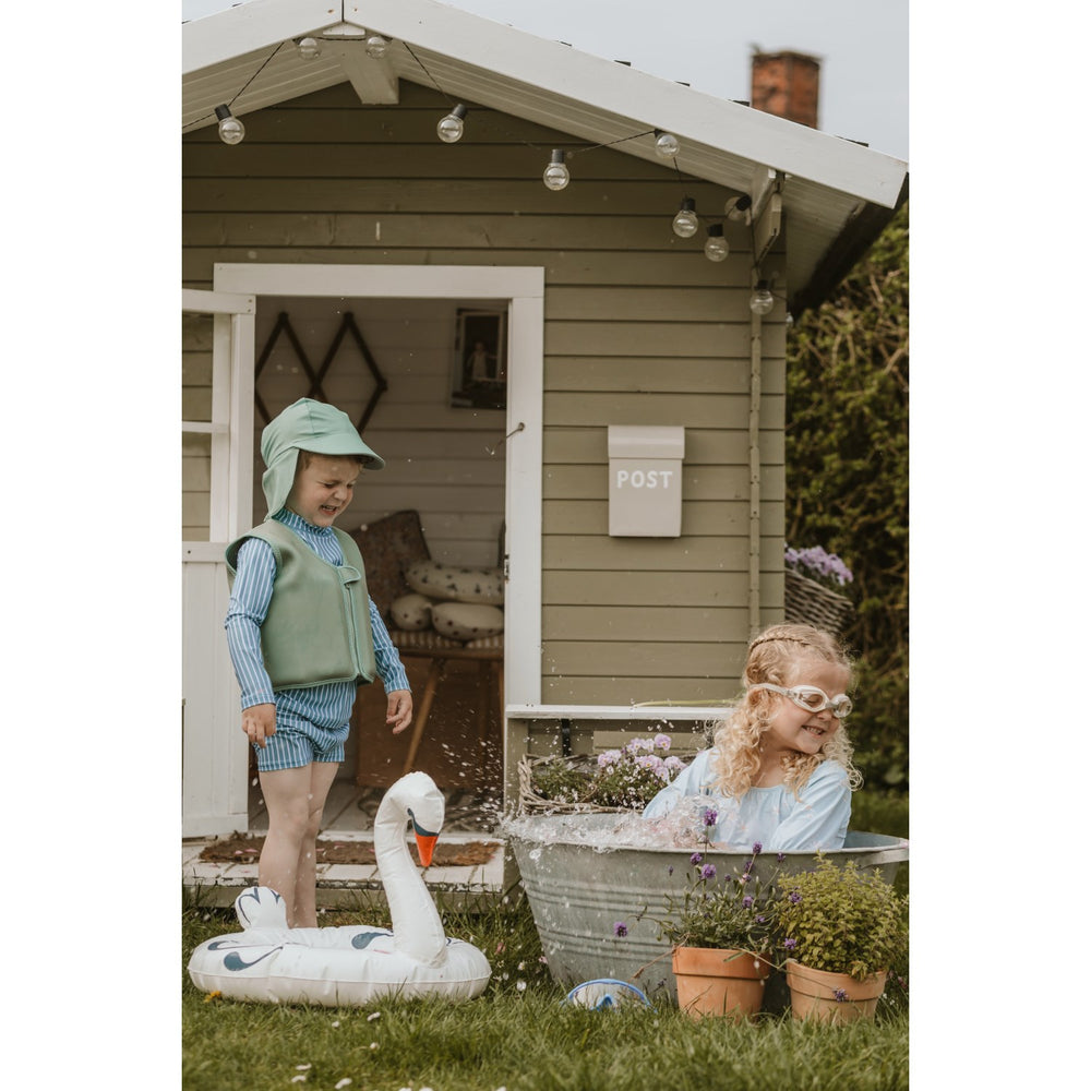Leg med tryghed og glæde – Vanilla COPENHAGEN Fern Green Svømmevest Neo sikrer børnenes sikkerhed i vandet. Denne vertifiserede økologiske bomuldsvest er designet til den aktive familie, der værdsætter sikkerhed og kvalitet. Med dens lette vægt og justerbare stropper passer den perfekt til børn og tilbyder en behagelig pasform uden at begrænse bevægelsesfriheden. Med sit diskrete, men stilfulde look er den velegnet til såvel poolen som stranden. Invester i ro i sindet og kvalitetstid sammen med familien.
