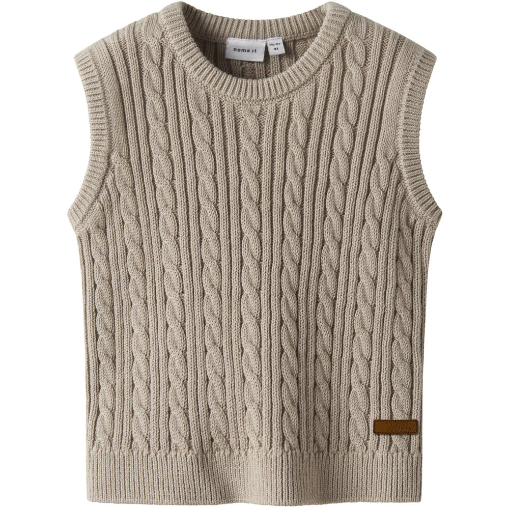 Lad dit barn opleve varmen og komforten med denne strikkede vest fra Name It. Dette tøjstykke, fremstillet i blød kabelstrik, sikrer en hyggelig følelse hele dagen. Den klassiske runde hals og ærmeløse design gør den alsidig til både køligere og mildere vejr. Ribkanterne tilføjer et pænt afsluttende touch, mens pasformen er normal, hvilket sikrer god bevægelsesfrihed. En perfekt løsning til hverdagstøj, der kombinerer både stil og praktisk anvendelighed.