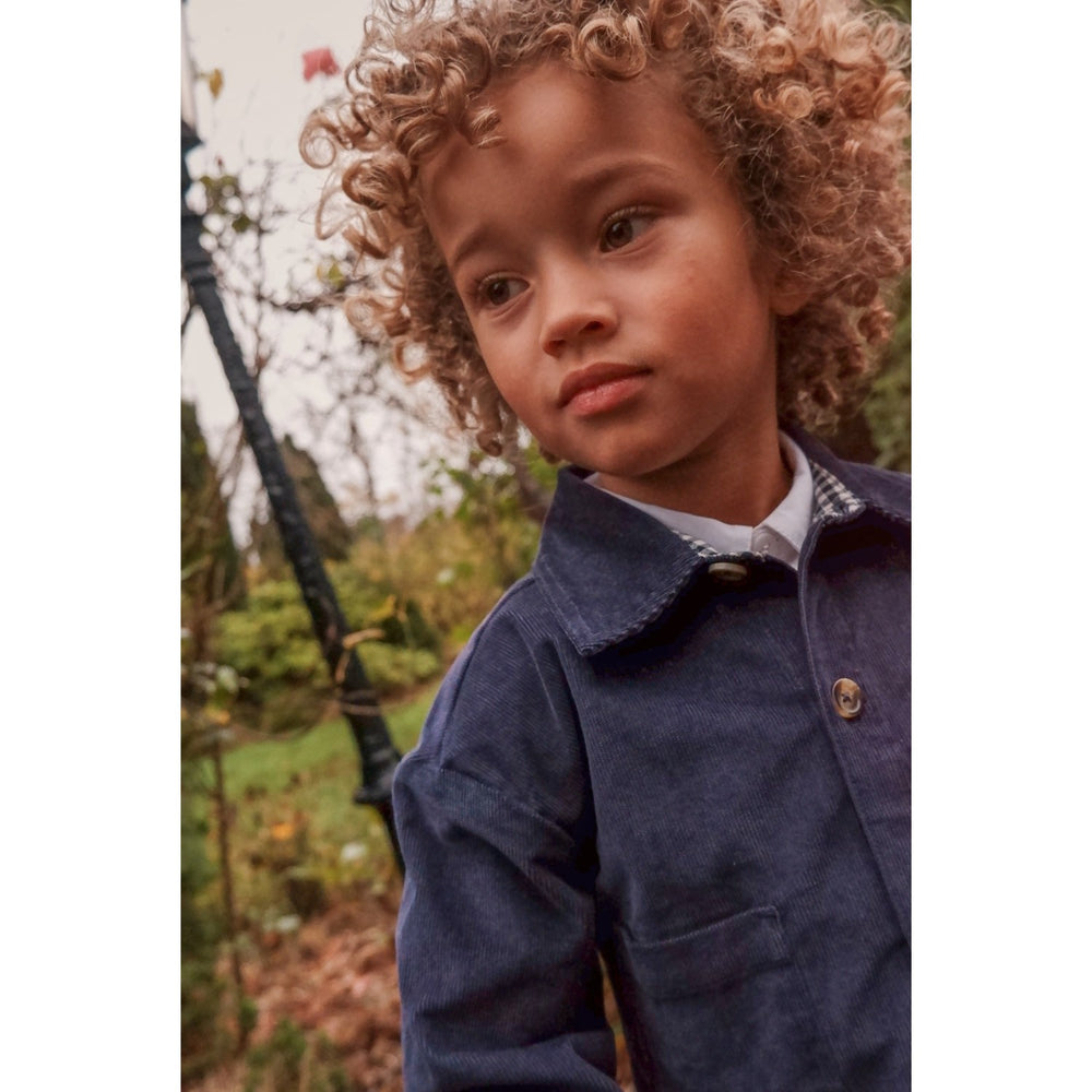 Billie Overshirt er fremstillet i blødt bomuldsfløjl og designet med en stilfuld krave samt praktiske forlommer prydet med diskret logobroderi. Den har benknapper langs stolpen og et charmerende ternet for, som tilføjer en fin detalje til hals og manchetter. Perfekt i kombination med Billie Pants for et koordineret sæt. Dette bekvemme og åndbare overtøj er ideelt til dit barns garderobe.