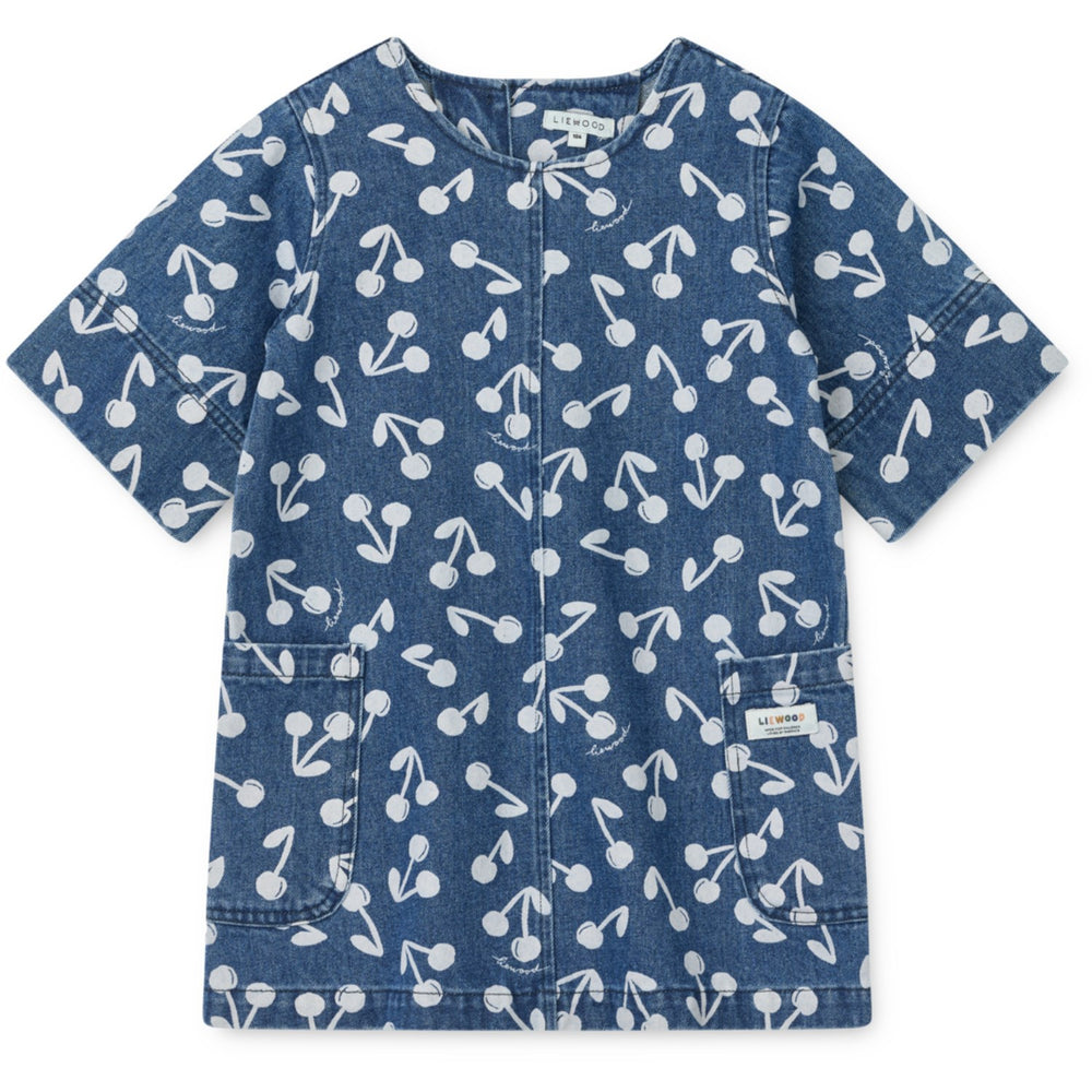 LIEWOOD Cherry Blossom / Medium Blue Denim Angelica Ss Printed Denim Kjole