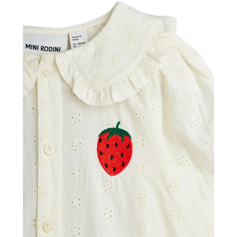 Mini Rodini White Strawberry Emb Schiffli Bluse