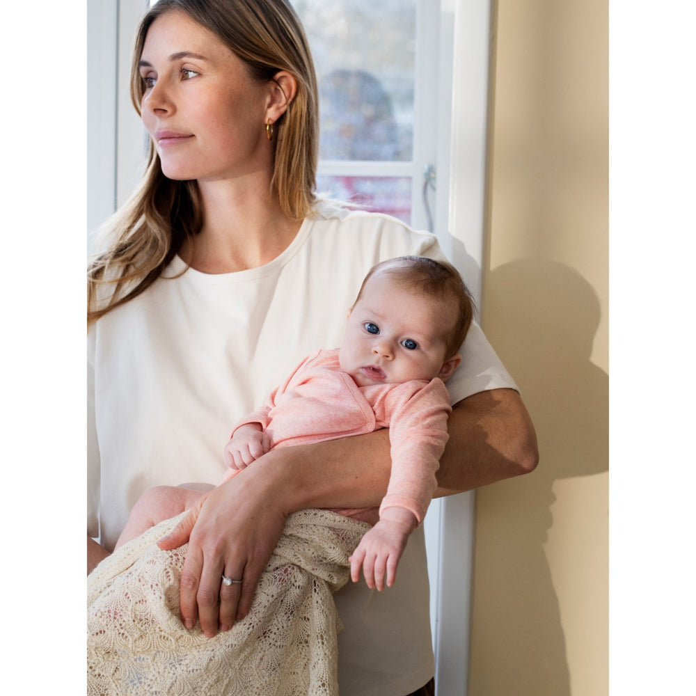 Denne Serendipity Coral nyfødt slå-om body er perfekt til de allermindste. Fremstillet i 100% økologisk meleret bomuld med en blød ribkvalitet, der sikrer optimal komfort og kvalitet til både nyfødte og for tidligt fødte børn. Praktiske trykknapper gør bleskift let og tilføjer bekvemmelighed til påklædningen. Størrelse 38-44 er designet med en lille åbning på retsiden for nødvendige medicinske rør. GOTS-certificeret for tryghed og renhed.