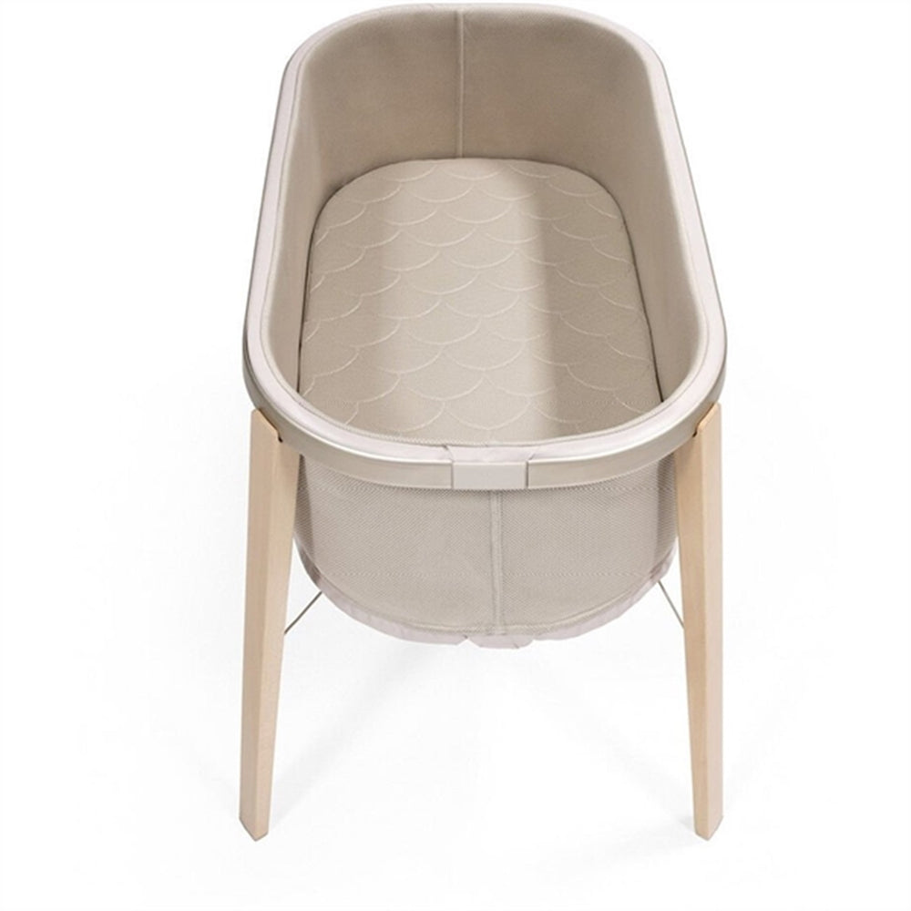 Lad din lille skat falde til ro i Stokke® Snoozi™ Babyseng i farven Sandy Beige. Denne ergonomisk designede vugge støtter både barnets trygge søvn og din bekvemmelighed i hverdagen. Fremstillet af økologisk bomuld og udstyret med en stabil base, sikrer den optimal komfort og sikkerhed. Let at flytte rundt i hjemmet, giver den fleksibilitet og gør nattestunderne enklere. Et perfekt valg for en fredfyldt familiestund.