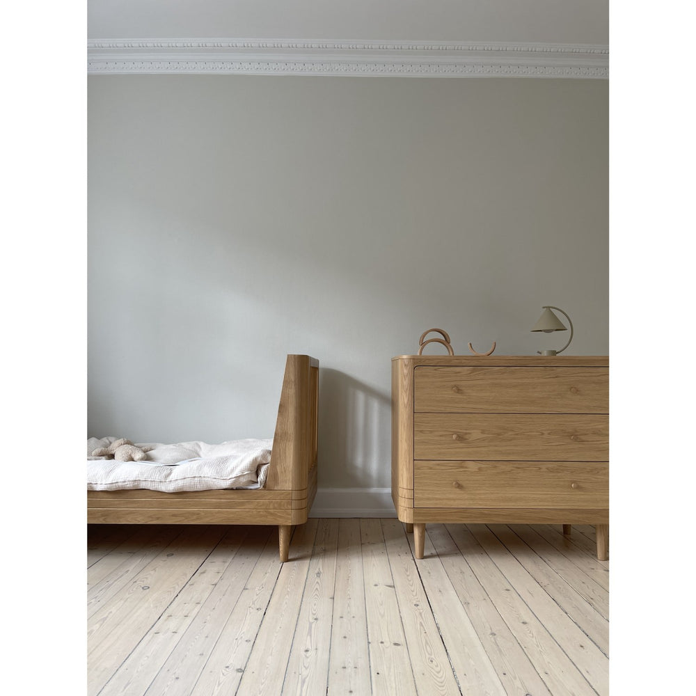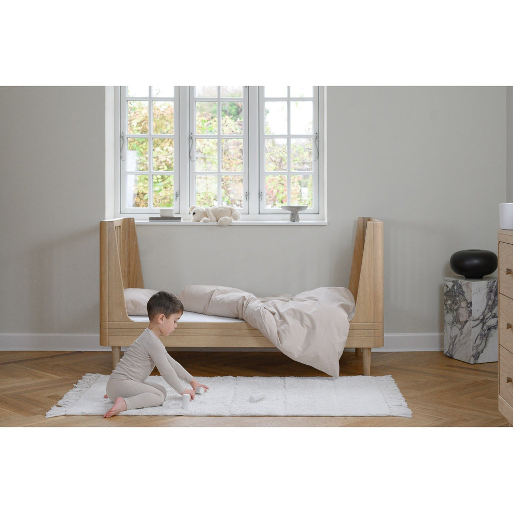 Giv dit barn den perfekte start på nattesøvnen med We Are Bitte Oak Nature Juniorseng. Denne elegante seng, fremstillet i holdbart massivt egetræ uden synlige skruer, sikrer et tidløst design, der harmonerer med enhver skandinavisk indretning. Med rundede kanter til at fremme sikkerheden og en sengebund i birkefinér, kombinerer sengen stil med funktionalitet. Den klare matte lak er sikkerhedstestet, hvilket giver ekstra tryghed for både dig og dit barn. Den stabile konstruktion står solidt, hvilket er essentielt, mens dit barn vokser. We Are Bitte Oak Nature Juniorseng byder på enkelthed og sikkerhed, som gør sengetid til en tryg og skøn oplevelse for hele familien.