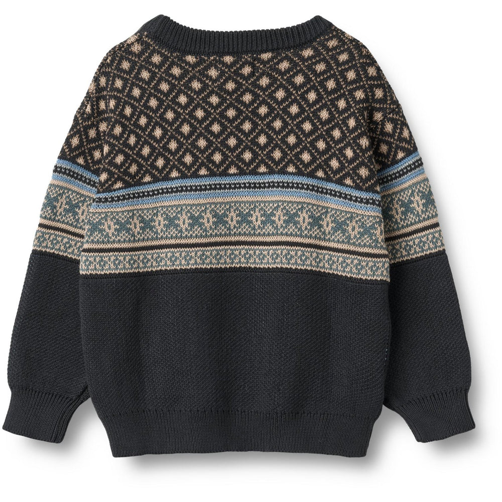 Wheat Navy Jaquard Pullover Julius - 3 år/98 er i restordre og vil blive sendt, så snart det er på lager igen.