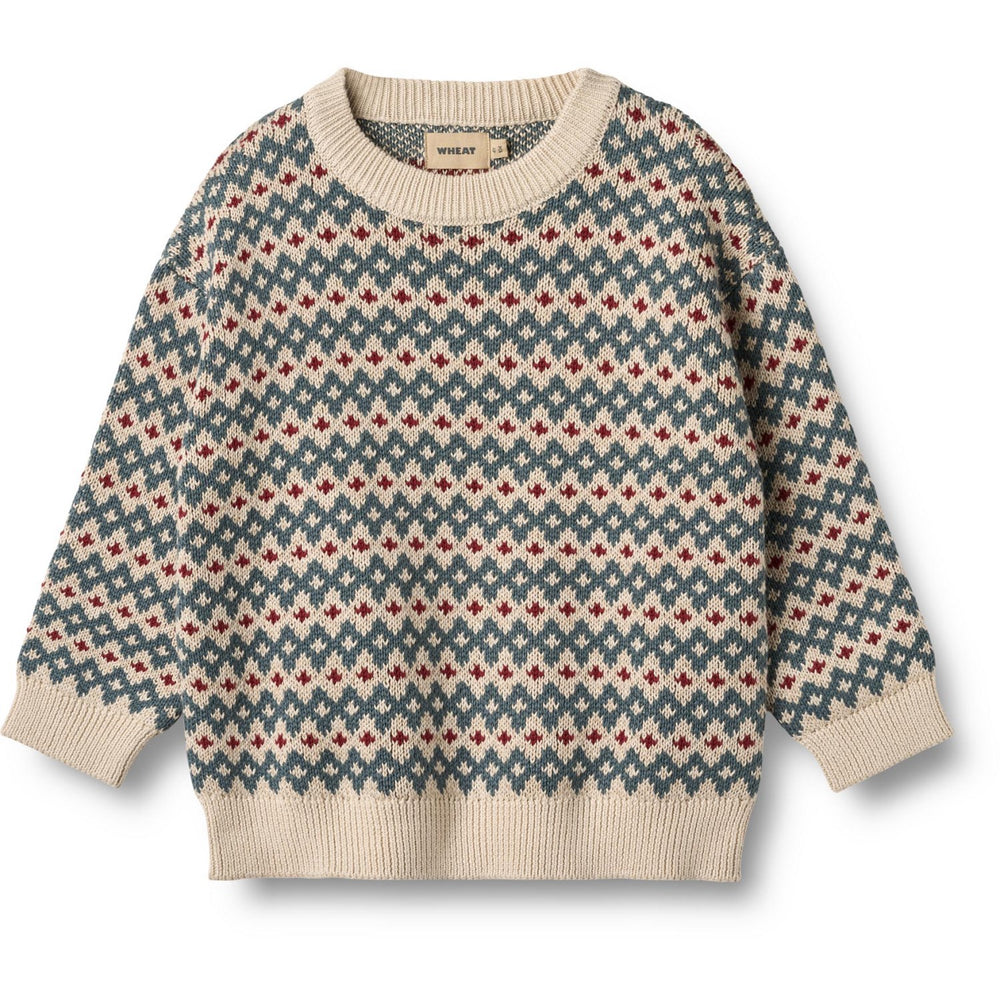 Denne langærmede Wheat Offwhite Jaquard Pullover Harlow er perfekt til at holde dit barn varmt og komfortabelt. Fremstillet af 100% økologisk bomuld sikrer det blødhed og hygge uden irritation. Pulloveren kommer i en afslappet pasform med sænkede skuldre, som tillader fri bevægelse, og ribkant ved hals og bund for en tætsiddende følelse. Det unikke strikmønster tilføjer en charmerende detalje, der gør denne sweater ideel til både casual og mere pyntede anledninger. Pulloveren er også certificeret af OEKO-TEX® Standard 100 og GOTS, hvilket garanterer et miljøvenligt og sikkert valg for dit barn.