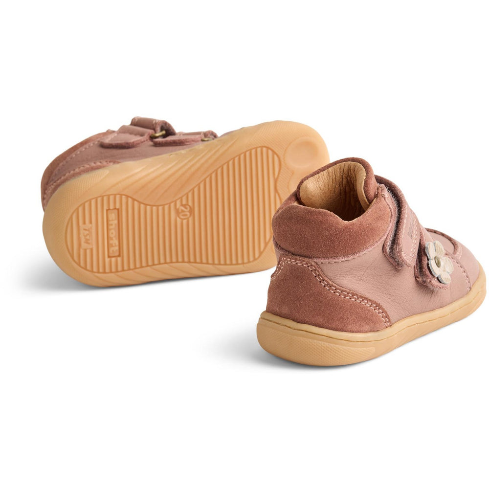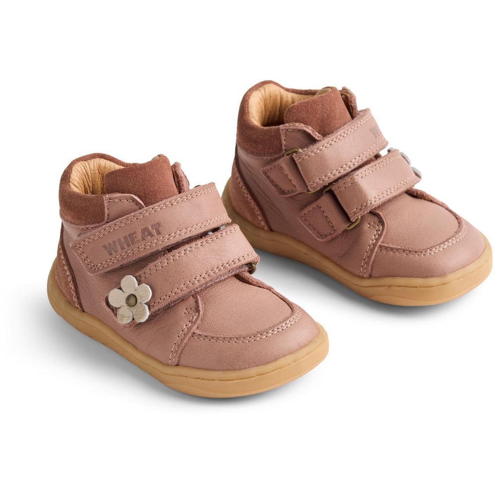 Oplev komforten og stilfuldheden med Wheat Old Rose Prewalker Barry begyndersko til dit barn. Disse charmerende støvletter er fremstillet i LWG-certificeret læder, sikrer åndbarhed og holdbarhed. Designet inkluderer en sød blomsterdekoration og ruskindsdetaljer, hvilket giver et unikt og attraktivt look. Skoene har dobbelt velcrolukning og en barfodspasform, der gør dem nemme at tage på og sikrer en næsten naturlig følelse ved brug. Det krom- og metalfri læderfor øger skoens komfort, mens den fleksible gummiydersål med ekstra tåbeskyttelse støtter dit barns første skridt sikkert. Med disse støvler kan dit barn udforske verden med stil og komfort.