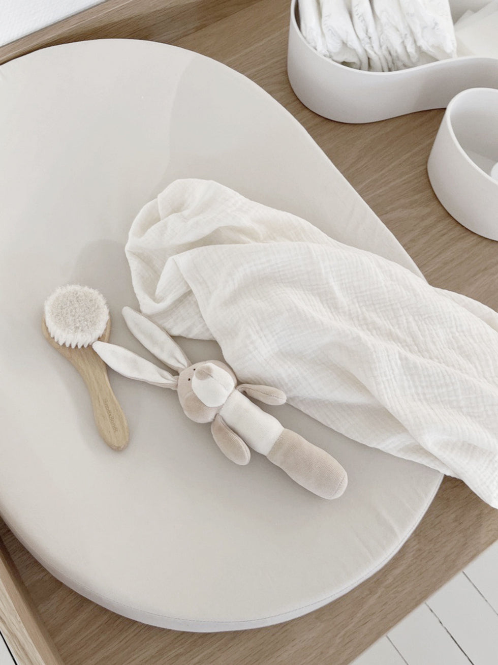 Puslebordet er ikke kun et sted, hvor du skifter bleer (og lærer at håndtere eksplosive situationer på rekordtid). Det er faktisk også et helt fantastisk sted at styrke båndet til din baby. Når baby ligger på puslepuden, er det en oplagt chance for at få øjenkontakt, smile, pludre og lære hinanden at kende. Babyer elsker at se ansigter — især dit! Det hjælper dem med at føle sig trygge og elskede. Og bonus: Det gør også pusletiden meget hyggeligere for jer begge.
