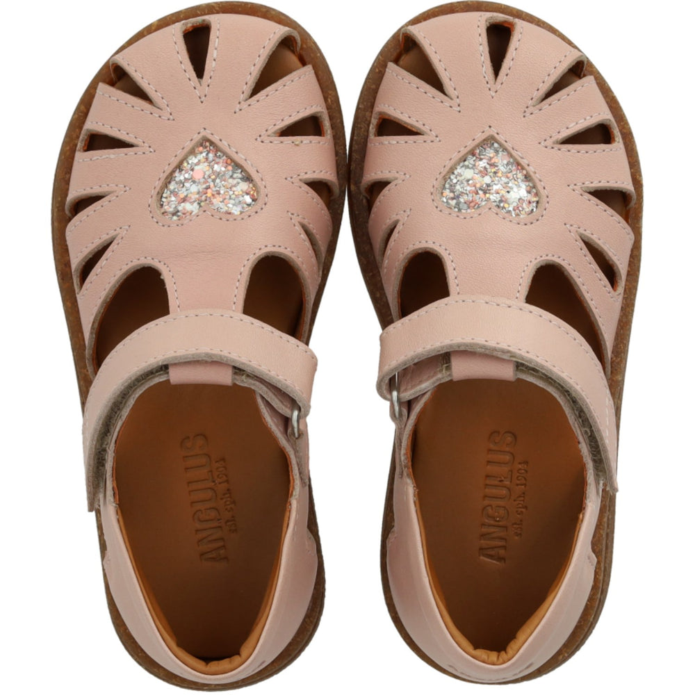 Angulus Rosebud/Rosebud Glitter Hjertesandal I Læder Med Funklende Glitterhjerte