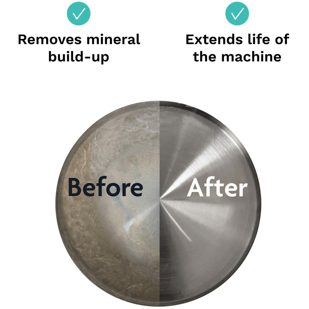- Der skal bruges 1-4 tabletter ved afkalkning - det afhænger af vandkvaliteten