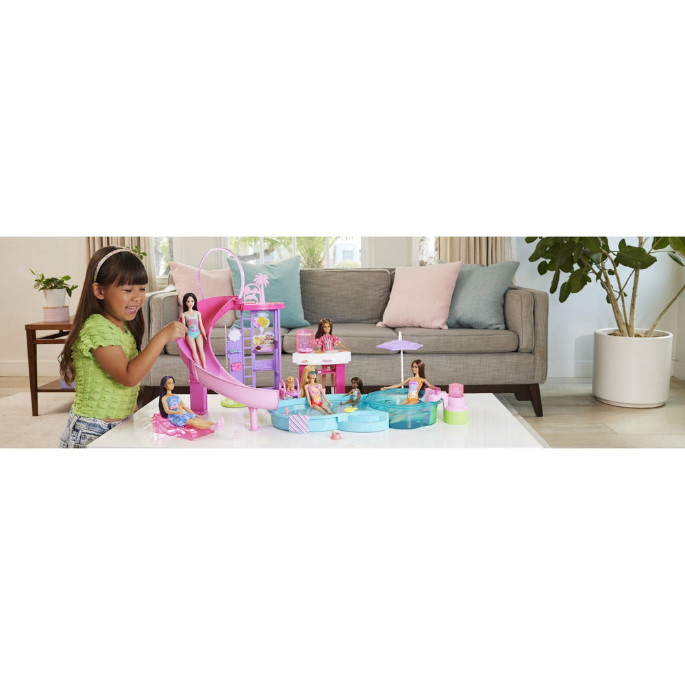 Oplev Barbie® Dream Badebassin – et perfekt legetøjssæt til timers fantasifuld leg. Med seks interaktive zoner, herunder en pulserende pool, sjov rutsjebane, et afslappende spabad og en snackstation, tilbyder dette sæt en rig mulighed for kreativitet og underholdning. Mere end 20 tilbehørselementer forstærker legens dybde og realisme. Let at fylde med vand, tilbyder sættet en spontan "poolfest" og børn fra 3 år kan nyde bobleeffekter i spabadet med et enkelt tryk. Barbie Dream Badebassin Sættet sørger for uendelige timevis af sjov, og styrker familiens samvær gennem leg. Dukker sælges separat. Farver og dekorationer kan variere. Engagerende og fuld af liv - et must-have til legetøjssamlingen.