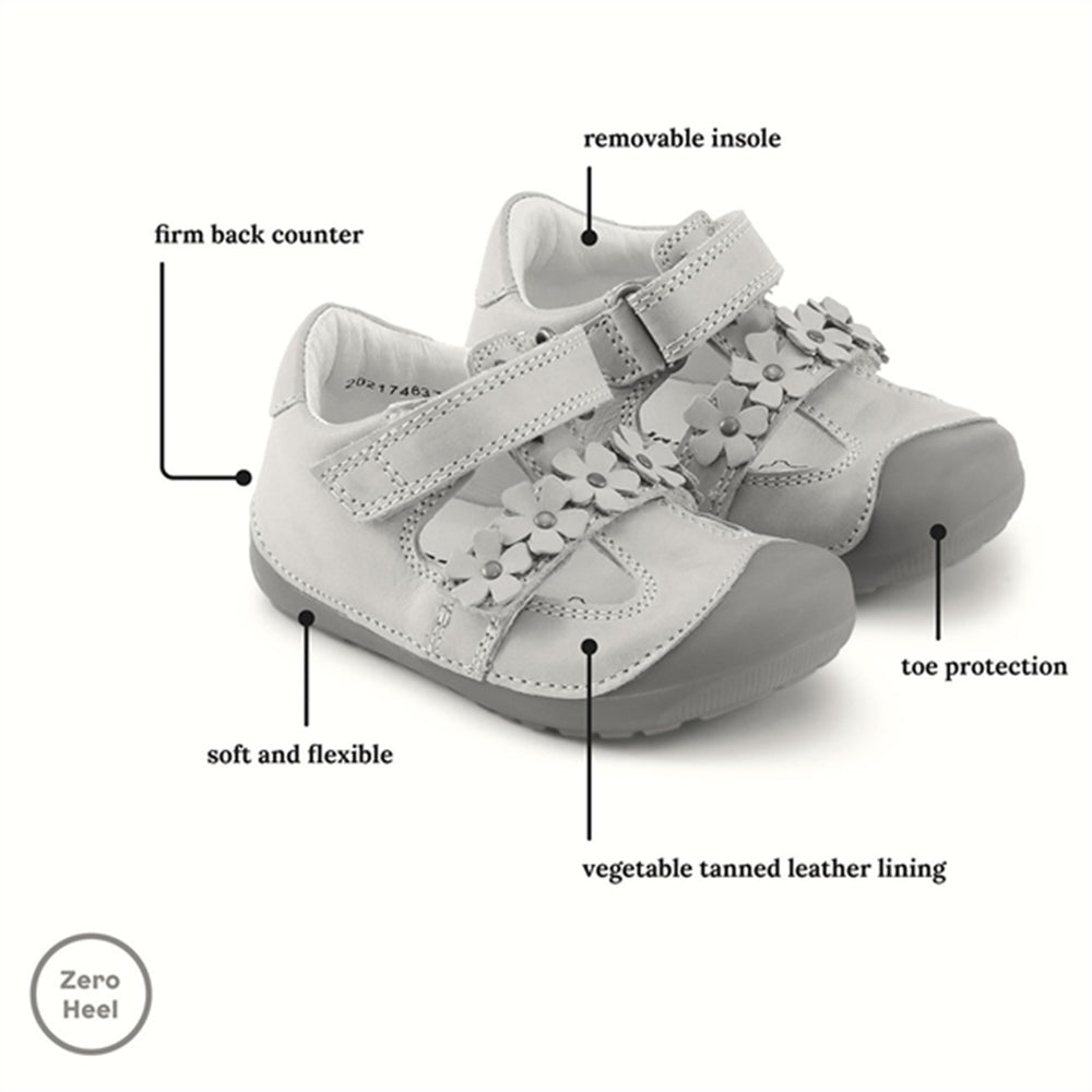 - Lukkes med velcrobånd og giver derfor gode justeringsmuligheder til barnets fod
