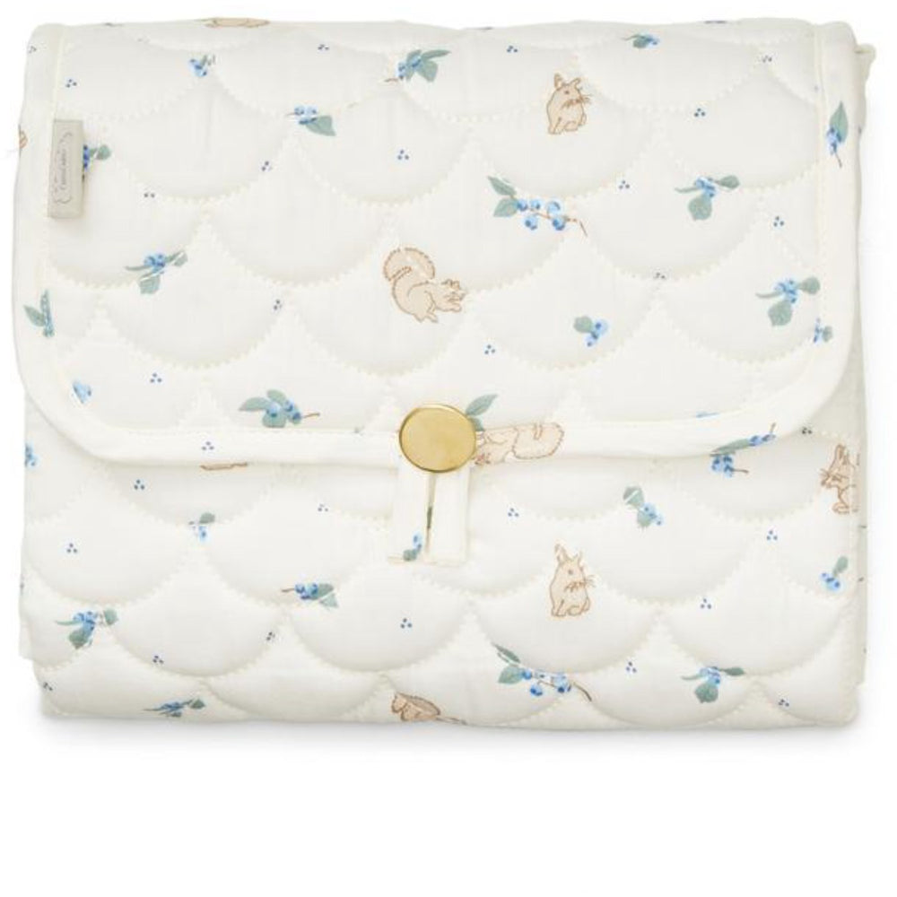 taske eller barnevogn. Fremstillet i økologisk bomuld, er dette underlag både hudvenligt og let at rense. TUV-certificering sikrer høj sikkerhedsstandard, hvilket giver ro i sindet, når det bruges til dit barn. Med sit multifunktionelle design fungerer det også som en komfortabel legeplads på farten. Ideelt for travle forældre, der værdsætter komfort, sikkerhed og kvalitet.