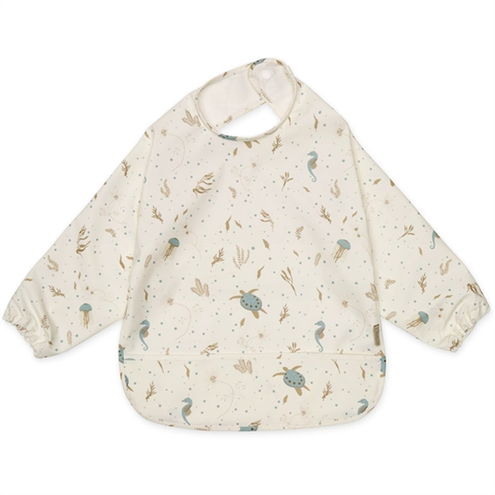 Giv dit barn frihed til kreativ leg og roligt måltider med Cam Cam Copenhagen Forklæde m. Ærmer Sea Garden. Dette forklæde er designet til at dække helt, med lange ærmer og en dyb lomme, som gør det ideelt til både spisetid og kunstneriske projekter. Fremstillet af økologisk bomuld er det ikke kun blødt og behageligt for dit barn, men også let at vaske. Farverne i beroligende grøn, brun og blå på cremehvid sikrer, at det ser godt ud, selv efter mange anvendelser. En essentiel del af ethvert børnehjem, der værdsætter praktisk, stil og komfort.