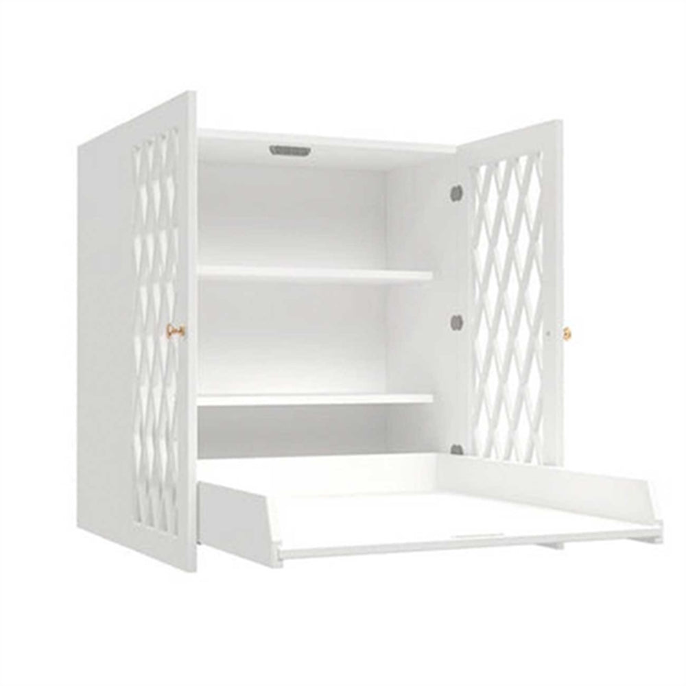 Smuk puslebord med Cam cam's klassiske Harlequin mønster. Her er det i en virkelig skøn hvid farve, der så nemt matcher resten af værelset. Puslebordets fine og æstetiske detaljer vil pynte et hver børneværelse eller på badeværelset. Bordet er nemt at anvende og består af en enkelt udtrækningsplade. Derudover har puslebordet to hylder, som kan bruges til opbevaring. Bordet er sikkerhedstestet i Danmark og godkendt (Test on evaporation of toxics on painted/lacquered surfaces).