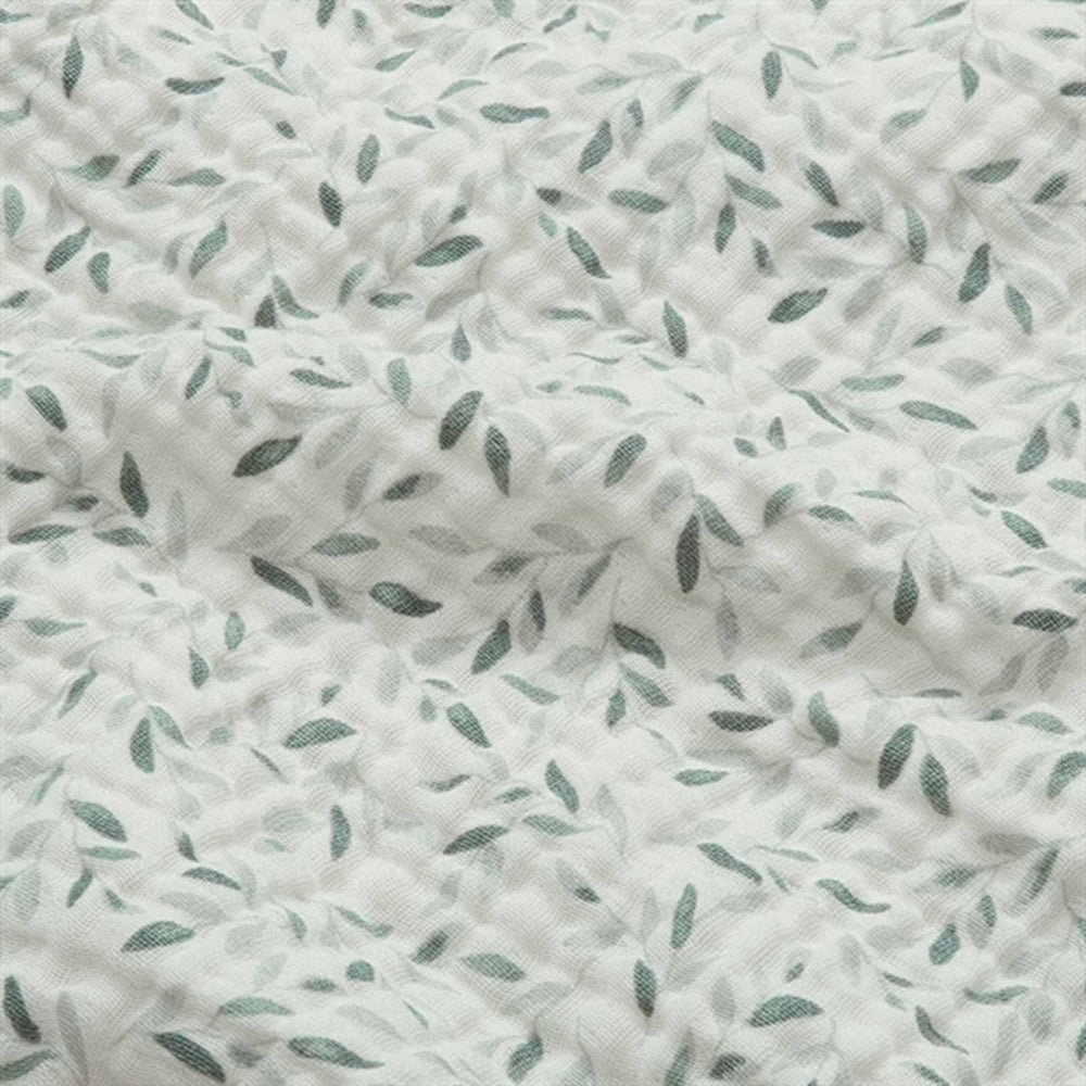 Blødt og let baby vattæppe med blade i grønne nuancer. Perfekt tilat svøbe din baby i, eller bruge i sengen til de større børn. Tæppet er lavet i økologisk bomuld, og har en god størrelse både til at bruge derhjemme og i barnevognen.