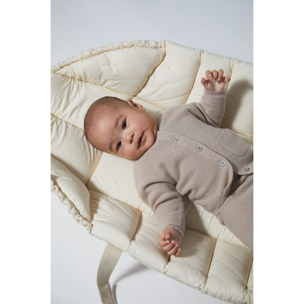 Oplev den klassiske baby cardigan fra Copenhagen Colors, udført i blødt beige cashmere. Dette stilrene design er perfekt til din lille, med en pasform der tillader bevægelse og komfort. Cardiganen er let at pleje og holder sig smuk, vask efter vask. Ideel til både hverdag og særlige anledninger.