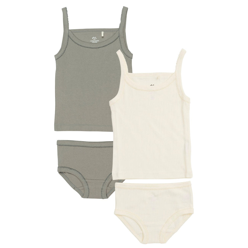 COPENHAGEN COLORS Cream/ Grey Comb. Rib Jersey 2Pack Stroptop og Underbukser - 104 er i restordre og vil blive sendt, så snart det er på lager igen.