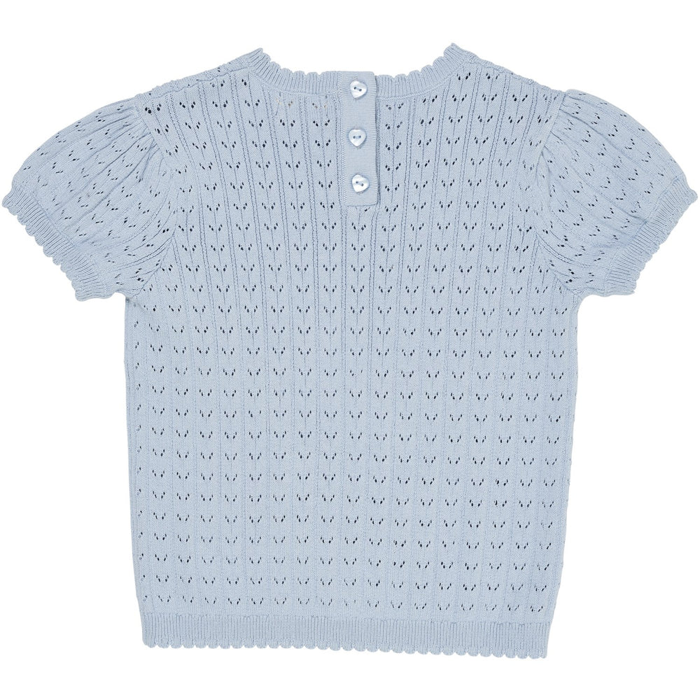 Lad jeres lille én opleve komfort i elegant stil med denne Dusty Blue strikkede pointelle-bluse fra COPENHAGEN COLORS. Blusens fine pointelle-mønster kombineret med det bløde og åndbare materiale sørger for en komfortabel pasform, der egner sig både til indendørs hygge og udendørs sjov. Den diskrete, støvede blå nuance og blidt formede pasform gør den let at matche med diverse børnegarderobefavoritter. En praktisk tilføjelse, der sikrer varme på kølige dage uden at gå på kompromis med bevægelsesfriheden.