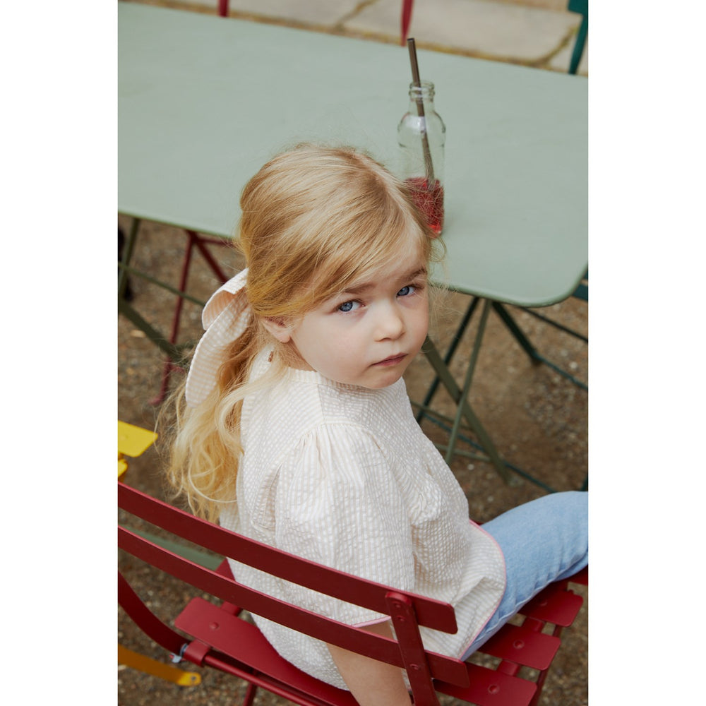 COPENHAGEN COLORS Dusty Rose W Cream Stripe W. Pink Seersucker Bluse W. Contrast Edge - 128 er i restordre og vil blive sendt, så snart det er på lager igen.