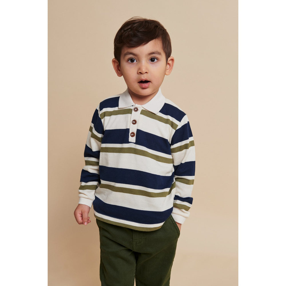 Denne charmerende grønne kombi-stribede piqué polobluse med lange ærmer er perfekt for det aktive barn. Fremstillet af 100% økologisk bomuld, tilbyder den optimal komfort og er blid mod barnets hud. Poloen har praktisk knaplukning ved brystet, hvilket gør den nem at tage på og af. Det tidløse design og de levende farver gør den ideel til både hverdagsbrug og særlige lejligheder.