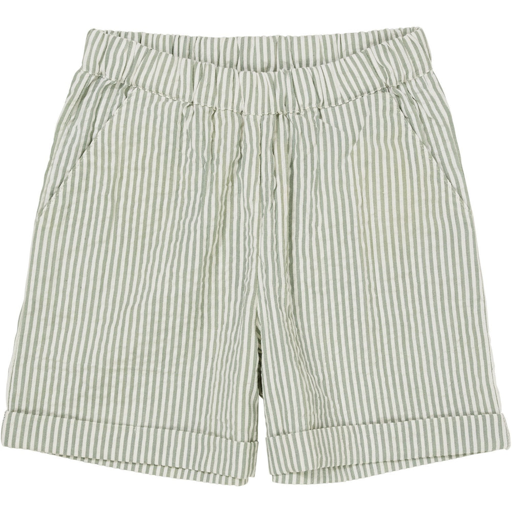 Klæd dit barn i komfort med Copenhagen Colors Green W Cream Stripe Seersucker Shorts. Disse shorts er fremstillet af 100% økologisk bomuld og designet med en klassisk blå stribet seersucker, som sikrer blødhed og holdbarhed. De er ideelle til aktiv leg, med let stof der understøtter fri bevægelse. Shortsene er maskinvaskbare ved 40 grader og holder både pasformen og farven, selv efter gentagen vask. Disse praktiske, stilfulde shorts er desuden GOTS-certificerede, hvilket understreger kvalitet og økologisk ansvarlighed.