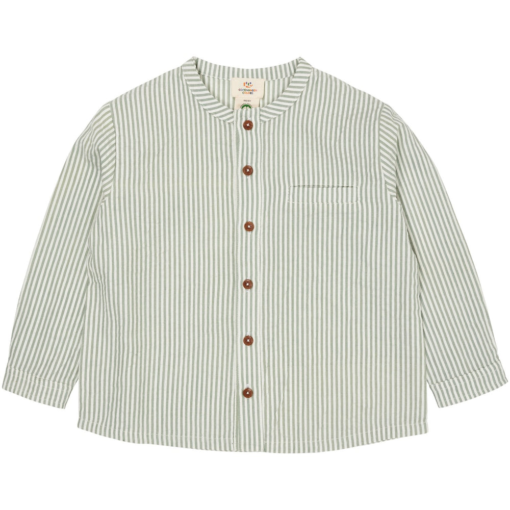 COPENHAGEN COLORS Green W Cream Stripe Seersucker Skjorte W. Placket