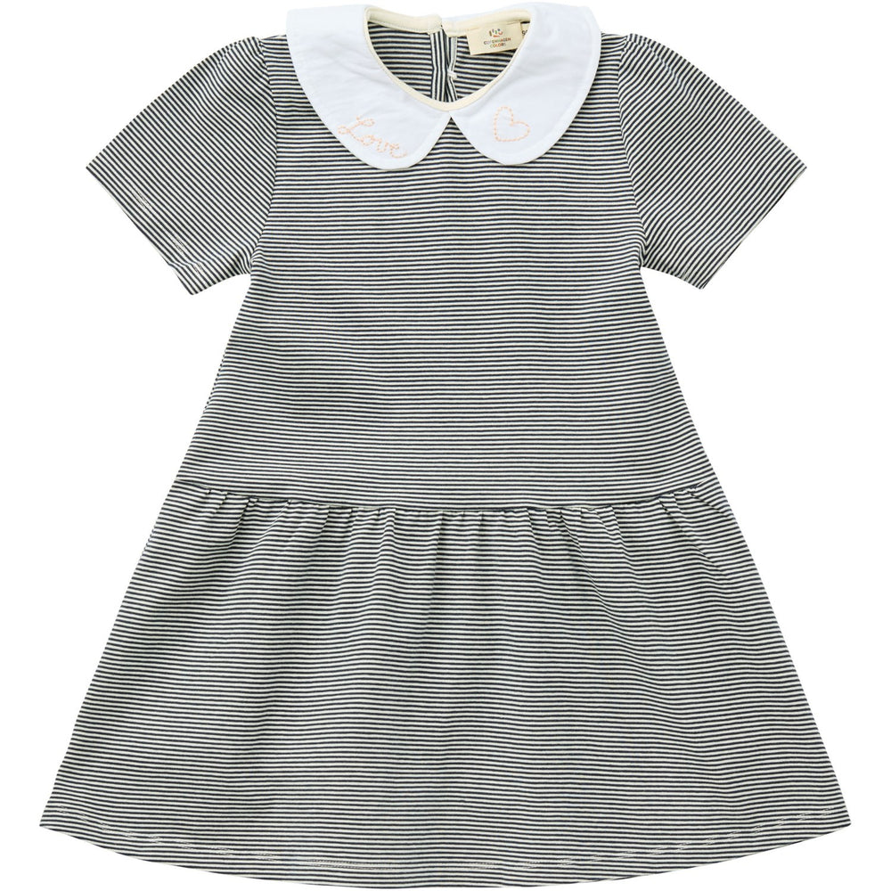 COPENHAGEN COLORS Navy/Cream Stripe Striped Kjole m. Poplin Krave