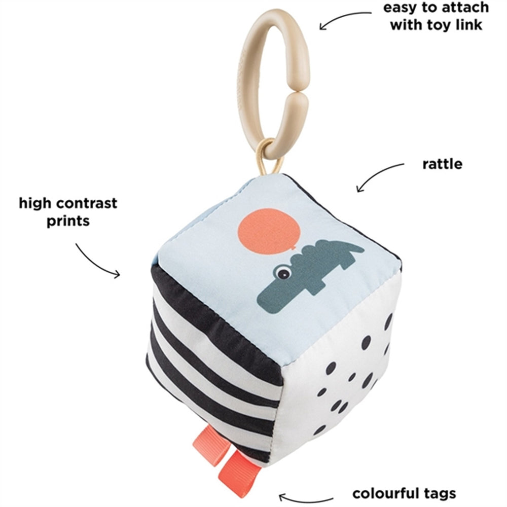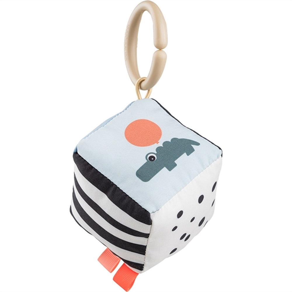 Ophængsringen gør det nemt at fastgøre terningen på barnevogn eller aktivitetsbue