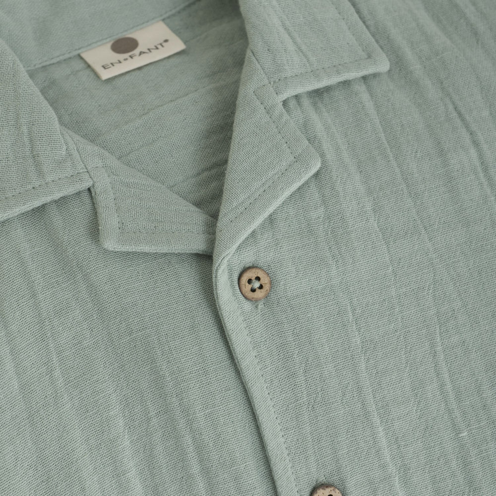Denne elegante muslinskjorte fra EN FANT er fremstillet i 100% økologisk bomuld, hvilket sikrer en blød og komfortabel oplevelse for dit barns hud. Med sit enkle design og korte ærmer er skjorten perfekt til både daglig brug og særlige begivenheder. Lukkes let med knapper foran og er GOTS-certificeret (CERES-0366).