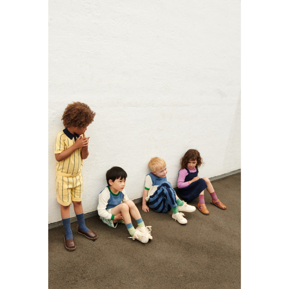 Denne elegante polobluse er ideel til dit barns garderobe med sine smalle lodrette striber og klassisk navy og vaniljefarve. Fremstillet af 100% certificeret økologisk bomuld, sikrer den både komfort og holdbarhed. De funktionelle corozoknapper og korte raglanærmer tilføjer funktionalitet samt stil, mens ribkanterne og den kontrastfarvede krave afrunder et skarpt look. Perfekt til hverdagsbrug eller særlige lejligheder, denne polobluse kombinerer stil med miljøbevidsthed.