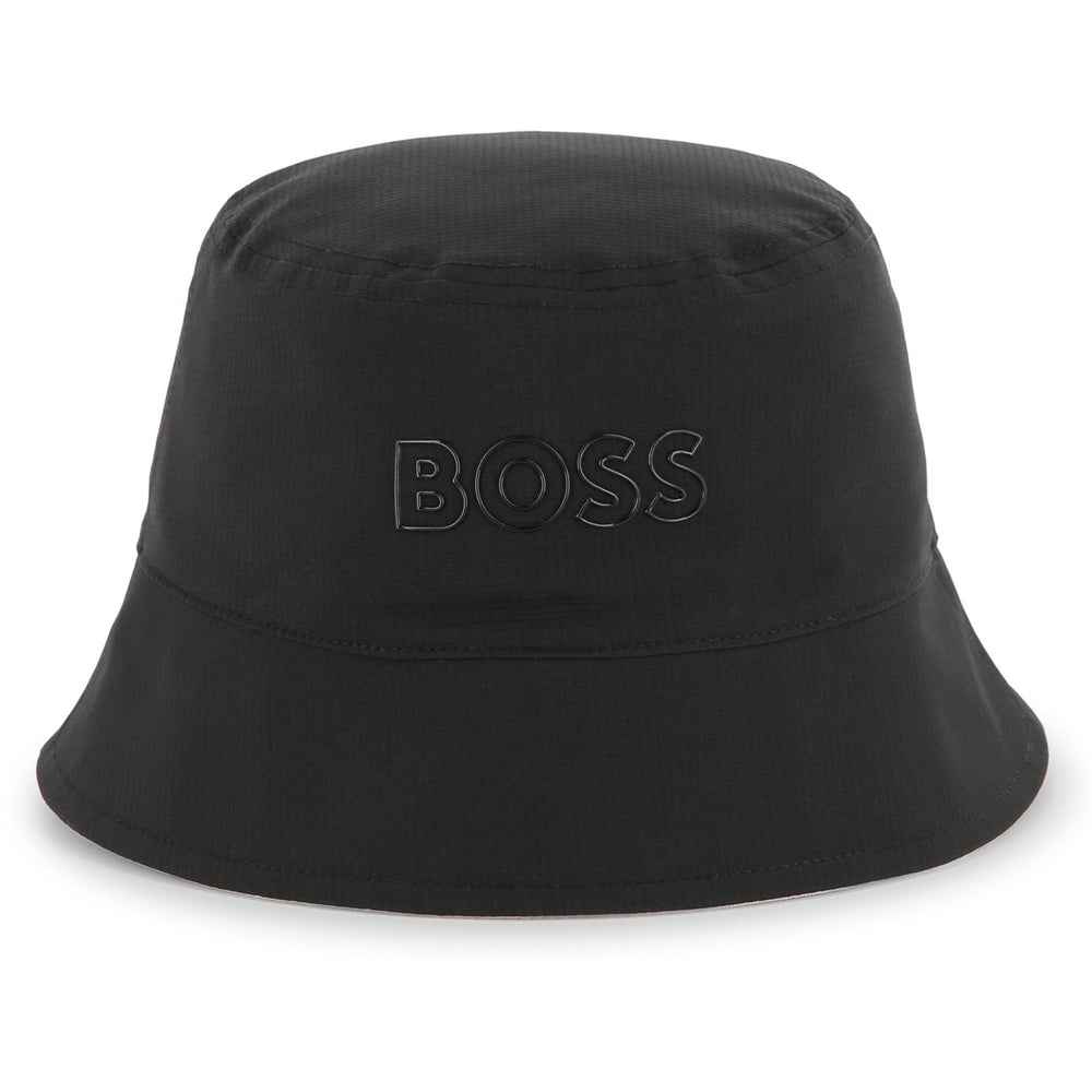 Giv dit barn en alsidig stil med Hugo Boss vendbar bøllehat. Den ene side er fremstillet i robust ripstop med et markant silikoneprint foran, mens den anden side tilbyder en blanding af bomuld og polyester twill med diskret mærketryk. Ideel til varieret hverdagsbrug, og sikrer komfort samt holdbarhed.