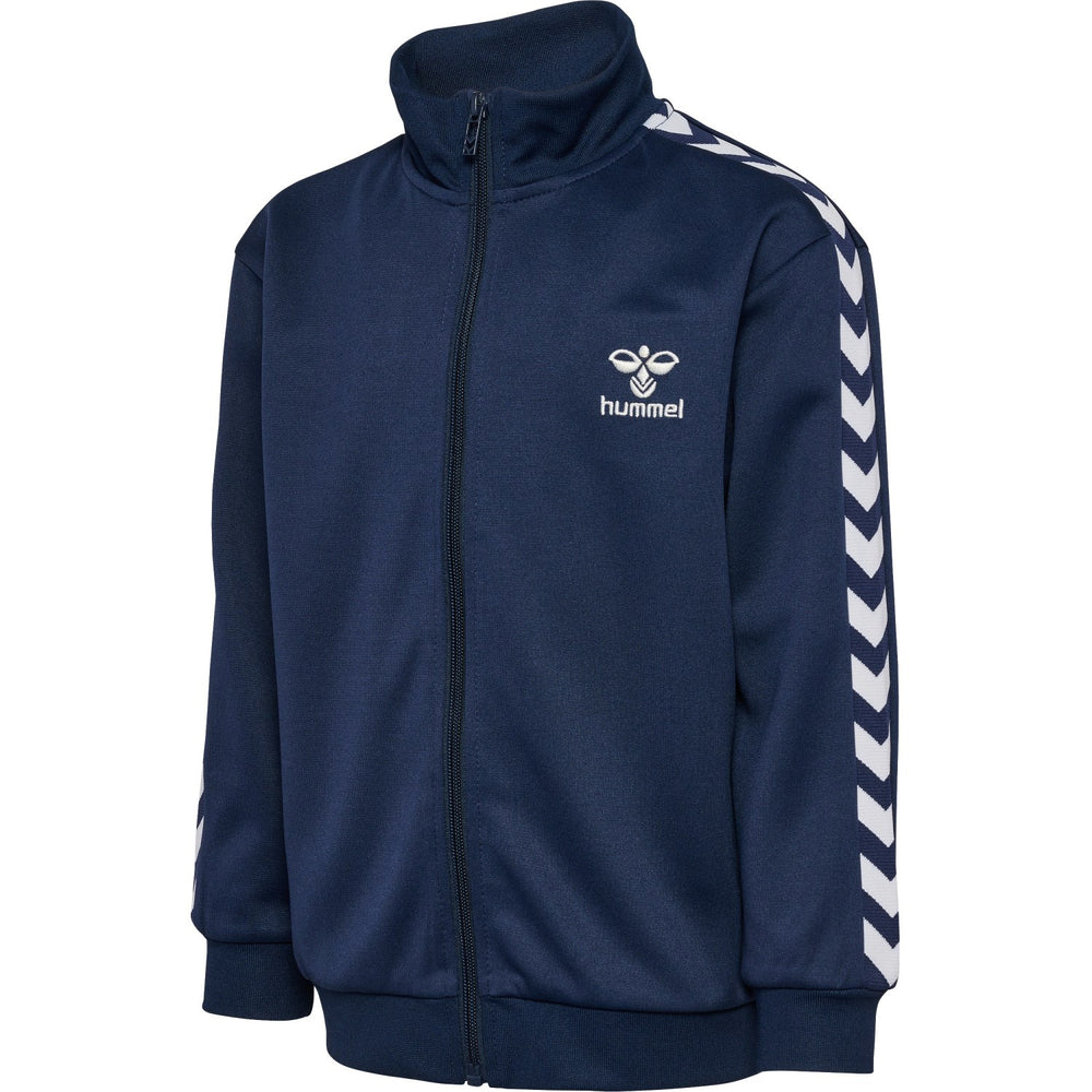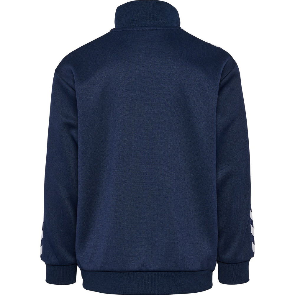 Denne hmlXIT ZIP JACKET cardigan til børn kombinerer funktionalitet og stil i ét. Fremstillet i glat strikket interlock-materiale, sikrer den komfort og holdbarhed. Cardiganen har et iøjnefaldende broderet logo på brystet og karakteristisk vinkeltape langs ærmerne. Den fuldlængde lynlås foran er designet med en beskyttende lynlåskant, der skåner barnets hage.
