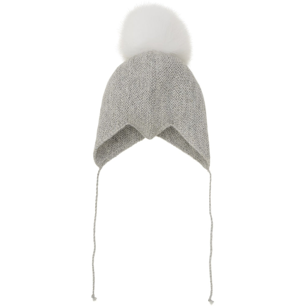 Huttelihut Medium Grey Melange Bonnet Uld Strik Alpaca Pompom