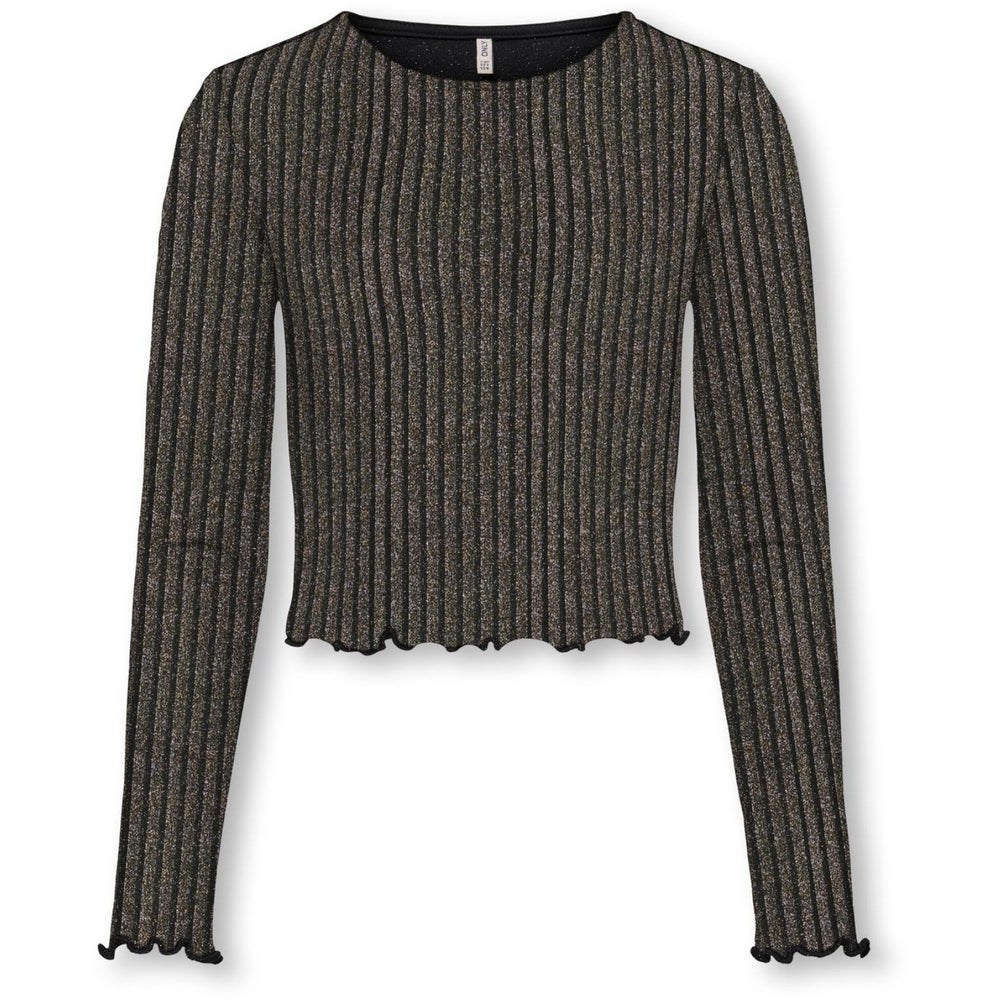 kids ONLY Black Lurex Light Gold/Silver/Wide Stripe Kogqueen L/S Glitter Top Bf Jrs