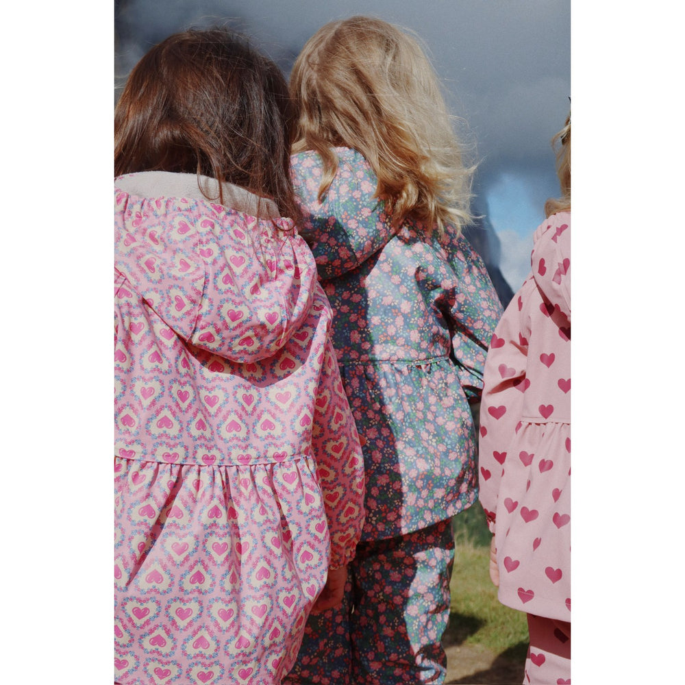 Konges Sløjd Kyoto Rainy Palme Sæt til piger kombinerer funktionalitet med charmerende design. Dette regnsæt i vindafvisende og vandtæt PU er forsynet med et varmt fleecefor, der sikrer maksimal komfort og varme. Designet inkluderer en praktisk, foret og aftagelig hætte samt elastiske manchetter, der yder ekstra beskyttelse mod vejret. Svejsede sømme sikrer total beskyttelse mod vand og gør dette sæt ideelt til udendørs leg, uanset vejret.