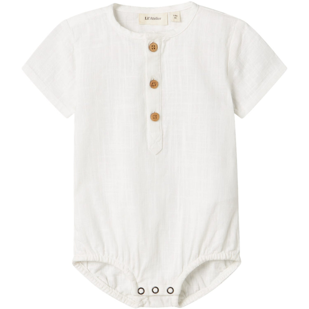 Giv din lille én stil og komfort med Lil'Atelier Coconut Milk Nbmhugo Ss Loose Body Skjorte. Denne bodystocking er fremstillet i blødt, vævet stof med et krydsmønstret design, der tilføjer en klassisk touch til tøjets udtryk. Med korte ærmer, en behagelig bedstefar-halsudskæring, og praktiske knapper ved lukningen, sikrer den nem påklædning og optimal komfort. Ideel til daglig brug, vakler den ikke i stil eller kvalitet.