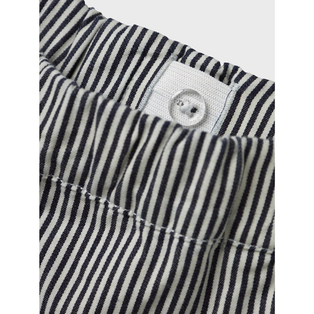 Dyk ned i komfort med Lil'Atelier Dark Blue Denim White Nmmkasper Loose Twi Bukser, ideelle til børns leg og udforskning. Disse jeans er fremstillet i slidstærkt twill-stof med et iøjnefaldende diagonalt mønster for et tidløst udseende. De løstsiddende ben og justerbar talje sikrer en perfekt pasform, mens elasticiteten i taljen tilbyder ekstra komfort. Udstyret med praktiske forlommer, er disse bukser ikke kun stilfulde men også funktionelle for daglig brug.