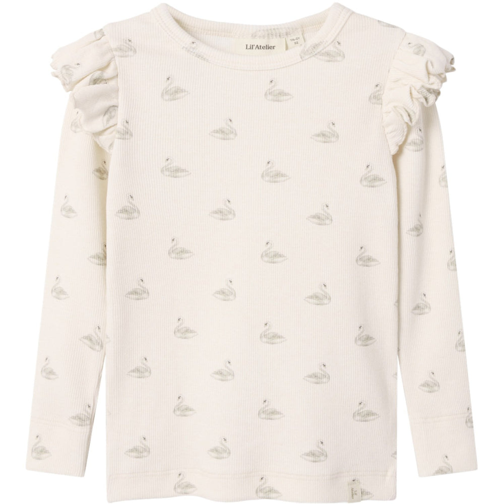 Lil'Atelier Pastel Parchment Swan Nmfgavo Eko Ls Slim Top Lil Noos