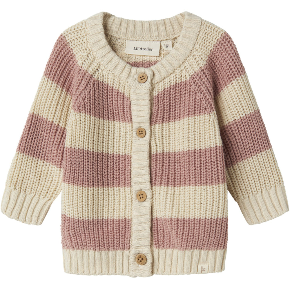 Denne charmerende strikkede cardigan fra Lil'Atelier er fremstillet i bløde materialer, der sikrer varme og komfort til dit barn. Med dens klassiske runde hals, lange ærmer og praktisk knaplukning er denne cardigan både funktionel og stilfuld. De fine ribkanter og det diskrete label tilføjer en elegant detalje, mens den almindelige pasform sikrer en behagelig dag, uanset aktiviteten. Vælg i farven Misty Rose for et moderigtigt præg i barnets garderobe. Sikkerhedsnotits: Hold væk fra ild.