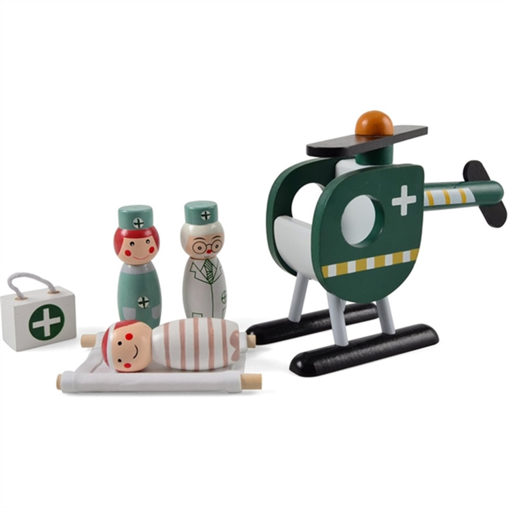- Flot helikopter i træ med figurer og tilbehør