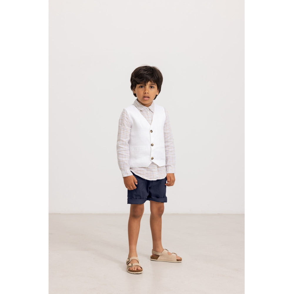 Lad dit barn opleve sommeren med stil i MarMar Fine Linen Summer Check Tommy Skjorte. Denne klassiske hørskjorte har en smart frontlomme og praktiske ærmer med knaplukning. Designet er tænkt til komfort med en længere bagdel, som sikrer god pasform hele dagen. Perfekt til både fest og hverdagsbrug.