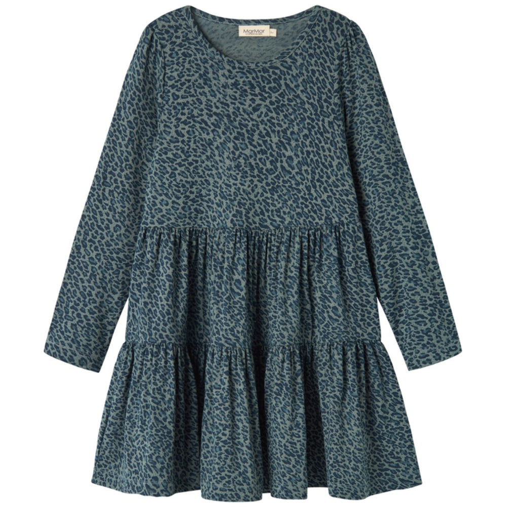 Denne charmerende MarMar Dolly kjole i Leopard Dusty Green mønster tilbyder en unik lag-på-lag stil med langærmede bløde ærmer. Perfekt over knæet længde sikrer fuld bevægelsesfrihed, samtidig med at den holder din lille varm og stilfuld. Velegnet til hverdagsbrug og særlige lejligheder.