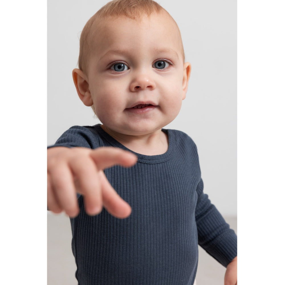 Denne langærmede, ensfarvede body fra MarMar er fremstillet i blød modal, der sikrer optimal komfort til dit barns hud. Bodyen er designet med praktiske trykknapper i skridtet, der gør det let at skifte ble. Med sit enkle design og rolige blå farve er den ideel til daglig brug og passer perfekt i ethvert børnegarderobe.