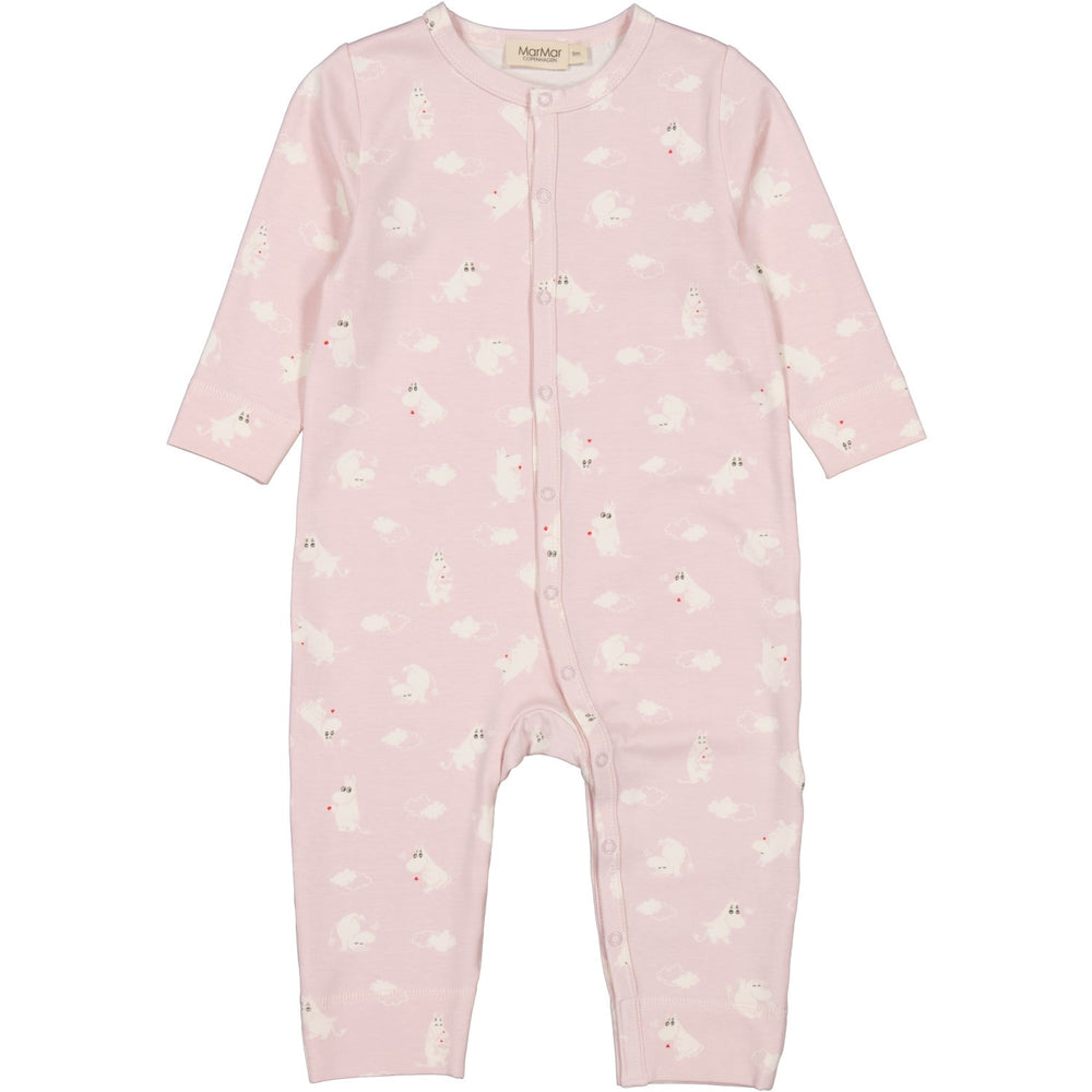 Denne langærmede bodystocking fra MarMar er prydet med et charmerende Moomin-print og fremstillet i blød, strækbar jersey med elastan for maksimal komfort. Den åndbare kvalitet sikrer velvære hele dagen, mens trykknapper på skulderen og mellem benene gør bleskiftning let. Produktet er Oeko-Tex® certificeret, fri for skadelige kemikalier, og bevares i både form og farve.