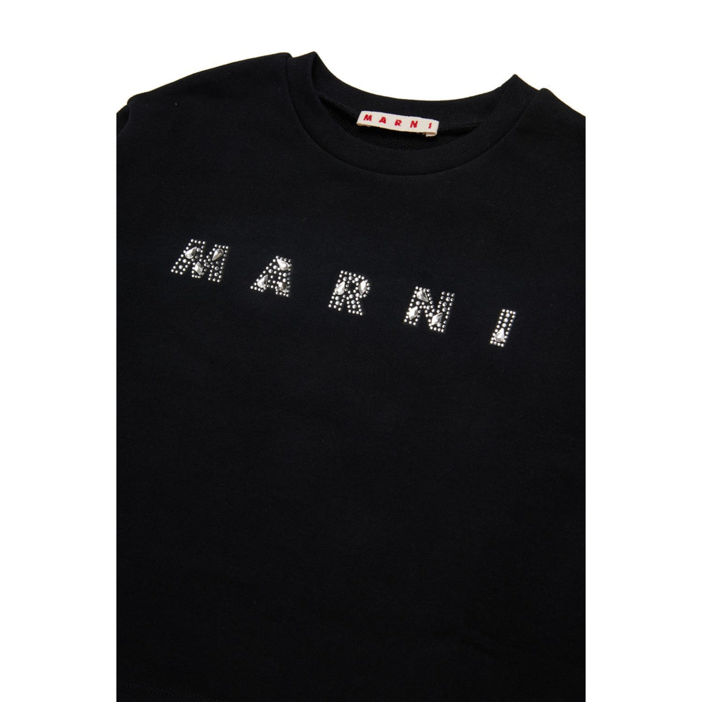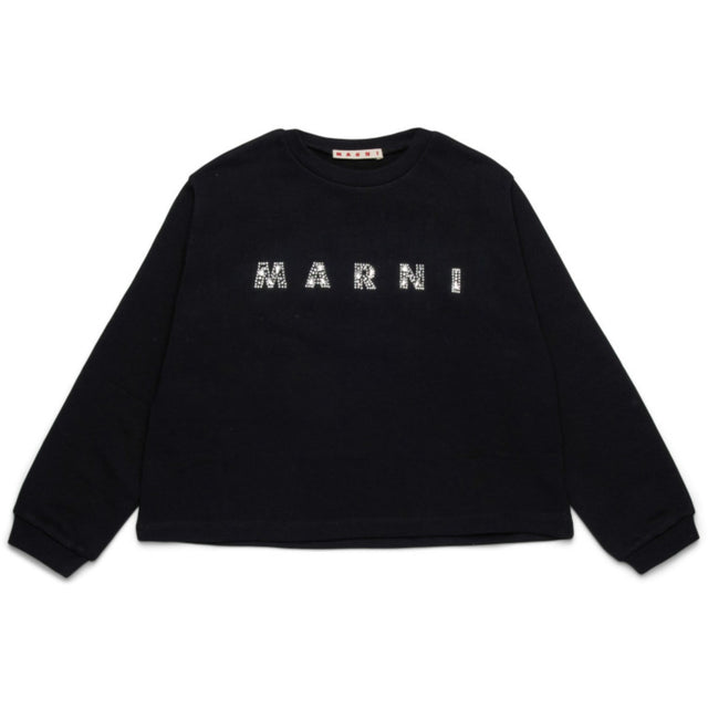Denne klassiske sorte Marni sweater til børn er fremstillet i blødt, økologisk bomuld, der sikrer komfort hele dagen. Det tidløse design kendetegnes ved en ren og simpel stil, der gør den let at kombinere med enhver type beklædning. Sweateren er ideel til både hverdagsbrug og særlige lejligheder, hvor børnene både ser godt ud og føler sig godt tilpas.