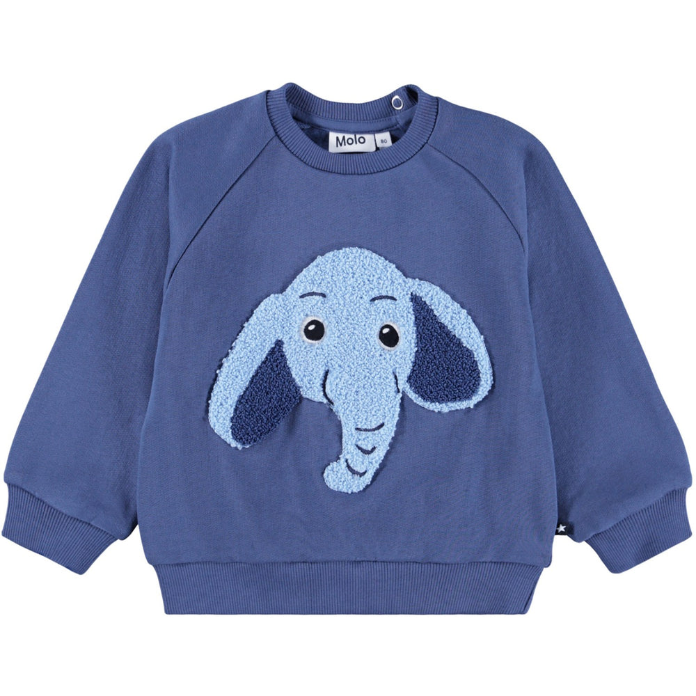 Giv dit barn varmen med denne charmerende 'Toy Elephant Disc' sweatshirt fra Molo. Fremstillet i blød økologisk bomuld, der sikrer optimal komfort og bevægelsesfrihed for dit barn. Det unikke elefantprint tilføjer et sjovt og stilfuldt touch, perfekt til hverdagsbrug. Sweatshirten er let at vedligeholde og kommer i størrelser passende til børn i forskellige aldre.